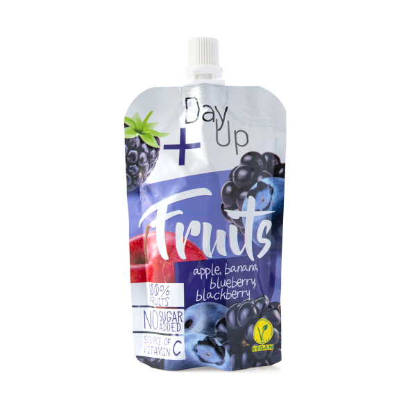 Složení: Jablečný protlak 76,9 %, banánový protlak 11 %, borůvkový protlak 6 %, ostružinový protlak 6 %, vitamin C 15 mg.