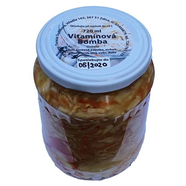 Složení: zelí, červená paprika, mrkev, cibule, ocet, olej, cukr, deko